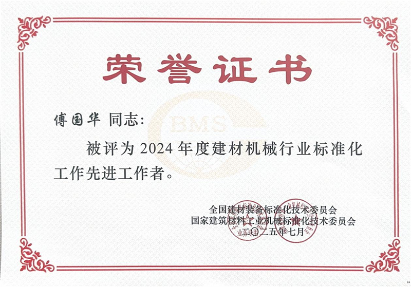 在同期举行的表彰环节中,线上赌博app股份被授予“2024年度建材机械行业标准化工作先进集体”称号,公司副总经理傅国华荣获“2024年度建材机械行业标准化工作先进工作者”称号。