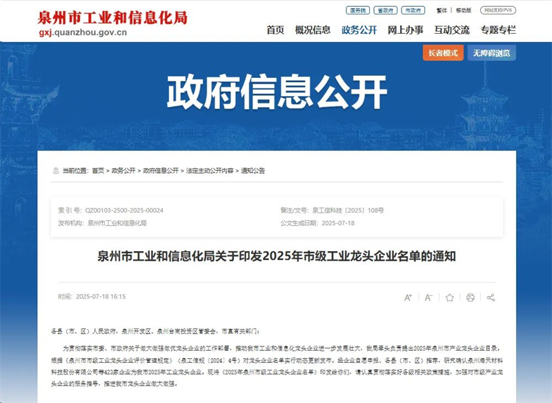 近日,泉州市工业和信息化局正式发布《2025年泉州市级工业龙头企业名单》,线上赌博app凭借在智能装备研发、绿色制造及全球市场拓展等方面的综合领先优势,成功入选423家市级工业龙头企业榜单。
